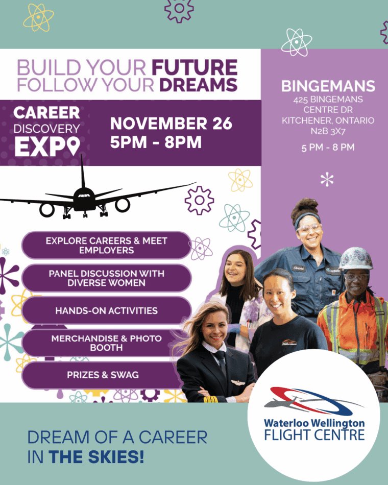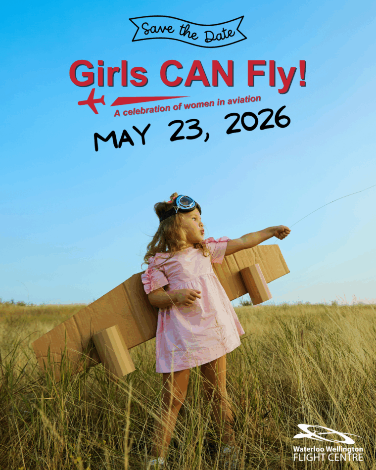 Waterloo Wellington Flight Centre (WWFC) is delighted to announce the return of our annual Girls Can Fly event on Saturday, May 23rd, 2026, from 10 a.m. to 4 p.m. at our location at the Region of Waterloo International Airport.